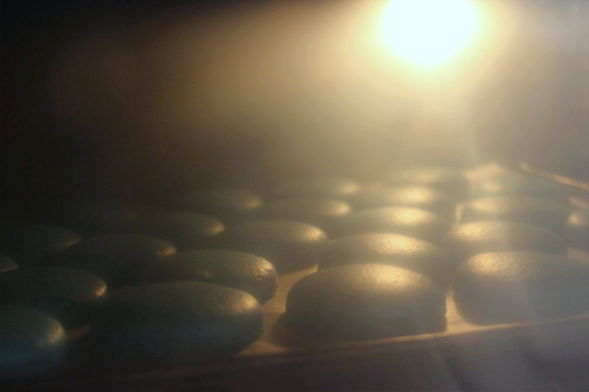 오븐 안에 마카롱의 삐에가 올라오는 게 보이시나요?