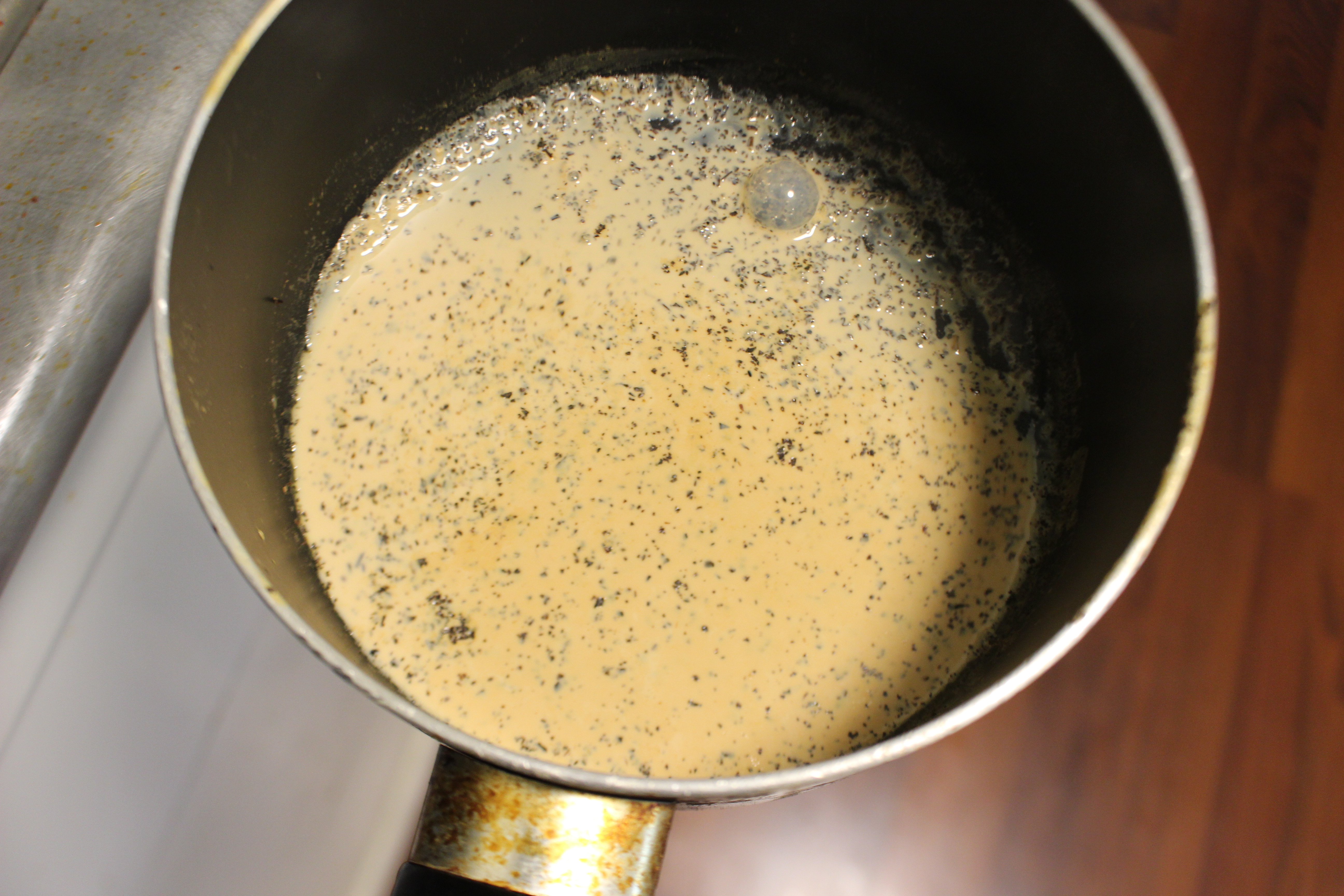 5. 티백을 걸러주고 약불로 타지않게 크림이 될때까지 끓어줍니다