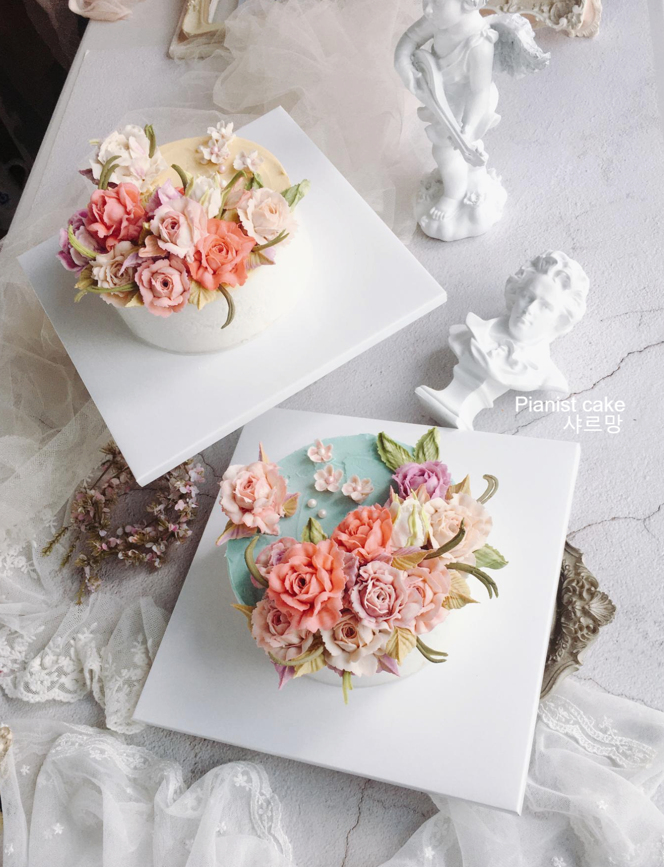 이 사진들은 제가 짠 장미들을 케이크 위에 어레인지 하기 전에 찍은 것들이에요