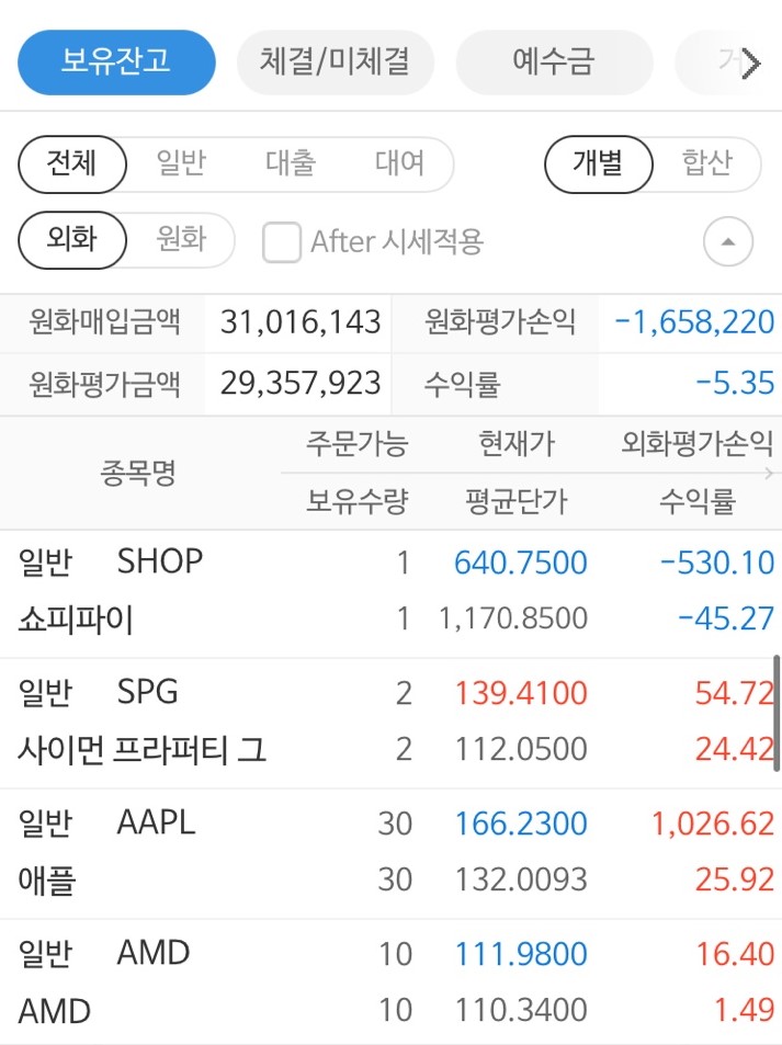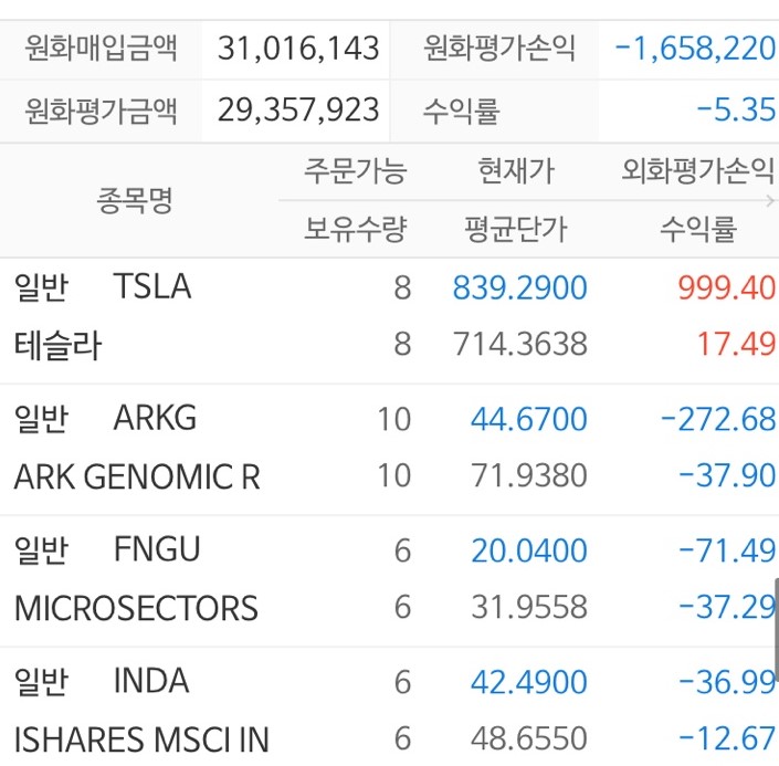 전 이미 총알이 없는걸요... ㅎㅎㅎ 그래도 약간 비싸긴 하지만 800불 초반대에 진입한 테슬라랑 30% 정도 빠진 AMD를 구매한 덕분에 방어가 되는 것 같아요.